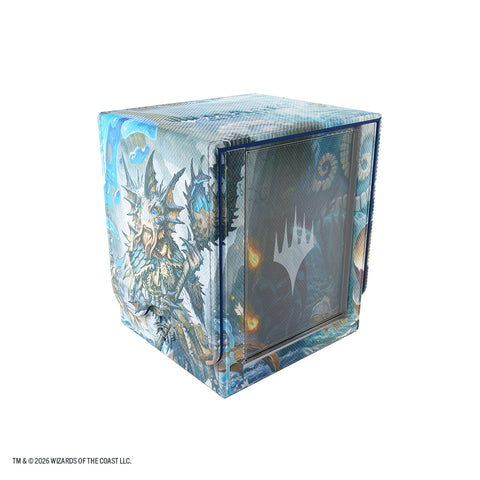 The Squire PLUS 100+ XL is a premium deck box featuring officially licensed artwork from Lorwyn Eclipsed, showcased on a full-color printed Armorfyber surface with high visual impact. It offers a clear innovation: display your Top Card or Commander without opening the box. The included Slide Card Case keeps your card UV-protected, easily visible for deck recognition, and can be detached for use during gameplay — keeping your card protected at all times. The box holds 100 double-sleeved cards, even with extra thick inner sleeves, or 100 regular double-sleeved cards with additional space for token cards. Equipped with our highly rated Convertible System, the removable cover clips onto the bottom of the box, saving table space and allowing easy card access during play.